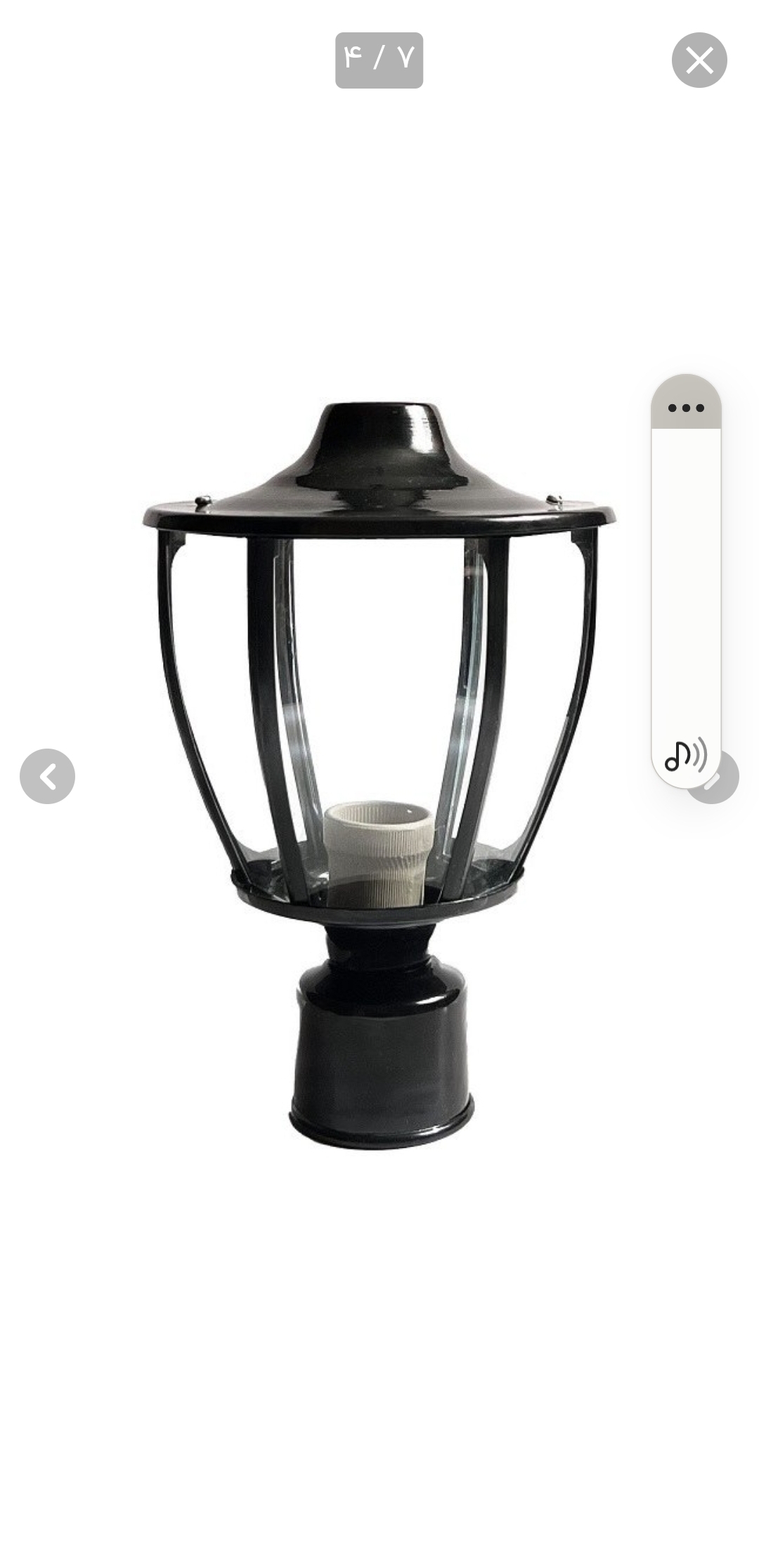 مشخصات کلی رنگ مشکی جنس نگهدارنده شیشه پلیمری کشور سازنده ایران جنس آهن, پلی اولفین, شیشه کاربرد حیاطی, سرلوله ولتاژ ورودی 220 ولت نوع لامپ قابل استفاده حبابی رشته ای (60 تا 200 وات), حبابی الایدی (9 تا 20 وات), کم مصرف پیچی (18 تا 26 وات) سرپیچ سرامیکی مقاوم به حرارت قطر لوله 7 سانتیمتر (مناسب برای لوله 6)