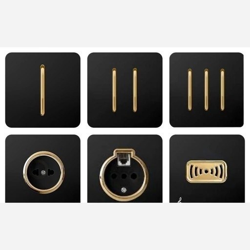 کلید و پریز آسیا الکتریک مدل کریستال - مشکی طلایی